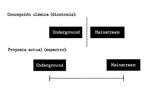 En todo caso, cabe preguntarse: que é exactamente iso ao que nos referimos como underground? “Non teño a día de hoxe unha definición pechada, principalmente, porque a miña investigación segue en curso”, comenta Nía, máis engade: “non obstante, si que teño claras varias matizacións sobre a definición clásica de underground”. Isto débese a que o concepto ao que se refire “non pode ser un concepto estático e monolítico, senón que se debería irse transformando e modificando á vez que o fai a propia cultura da que se nutre, non é o mesmo falar de underground nos anos 70 que facelo en pleno 2021″. Polo tanto, “empregar a mesma definición de hai 40 anos, sería non ter en conta as condicións sociais e históricas que vivimos na actualidade”. De feito, a socióloga non entende a diferenciación entre comercial e subterráneo, entre underground e mainstream, coma unha dicotomía pechada e excluínte, senón coma un espectro no que “unha mesma banda en diferentes momentos da súa traxectoria poida posicionarse nun lugar ou outro” e onde algúns artistas exercen de “bisagra” estes “dous mundos”.