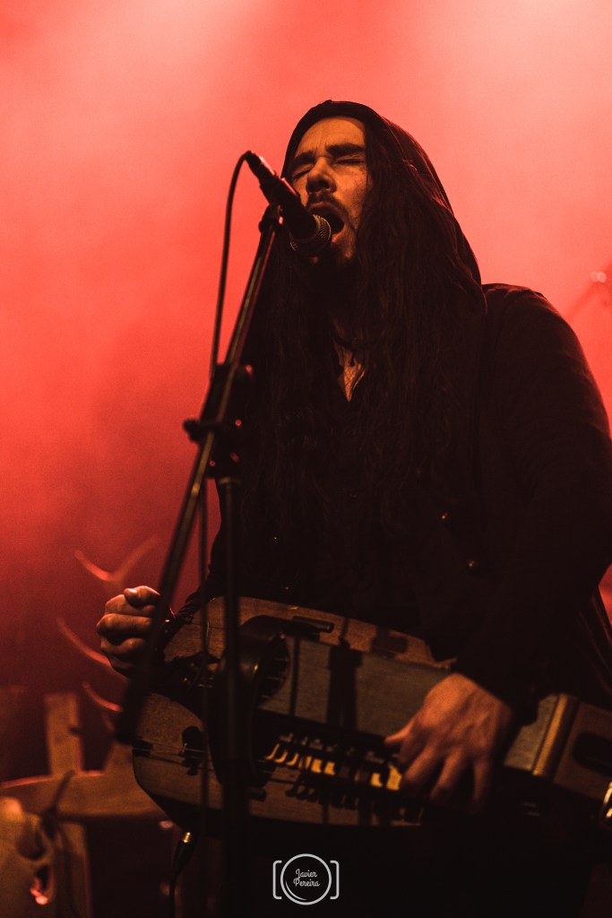 Xa caía o resío pola noite do sábado 27 de novembro nos arredores da sala Rebullón de Mos. Era unha noite fría, pero na sala estabamos moi a gusto agardando o concerto. Comezaron á hora pactada os valencianos Cuélebre, un grupo de folk medieval e pagán. Cuélebre busca a inspiración nas raíces da península ibérica e a súa mitoloxía, amosando así letras baseadas en escritos feitos sobre deidades de orixe prerromano. Cun universo celtíbero de fondo, a música xurde a través dun compendio de instrumentos medievais e sons atmosféricos, recreando rituais precristiáns ligando a vida e a morte. Un gustazo escoitar a voz de Judit, a frauta de Budy, a percusión de Mario, as cordas de Sammy, o curioso didgeridoo de Víctor e a zanfona de Yhandros. Un gustazo escoitar a este quinteto e gozar da súa posta en escena. A verdade e que foron un inicio de concerto moi acertado para o que viña a continuación.