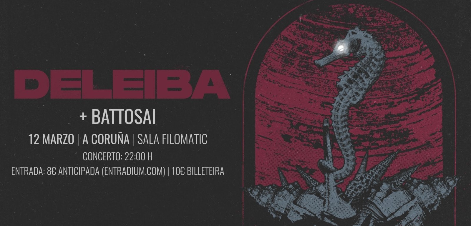 O vindeiro sábado 12 de marzo, a coruñesa sala Filomatic será testemuña dunha dupla que une a experiencia e frescura do rock galego actual, a formada por Deleiba e Battosai. Cunha cronoloxía paralela, ambos proxectos inician as súas andainas en directo en 2019 para presentar os seus primeiros temas. Anos máis tarde, Battosai e Deleiba enfróntanse ao reto de medrar, evolucionar e gañar adeptos en salas emblemáticas da xeografía galega como é a Filomatic.