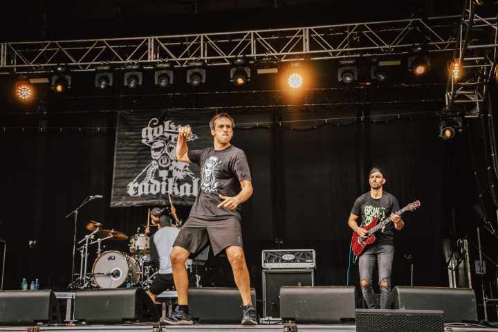 Agora era a quenda de Golpe Radikal, que comezaban inmediatamente despois de Grima, ás 16:55, no escenario Ritual. Desta vez estabamos ante un grupo de hardcore e metalcore, procedente da Pobra do Caramiñal e cunha formación de sexteto que inclúe dous vocalistas con diferentes estilos de voces berradas. O grupo destaca polas súas letras políticas e combativas, tanto en castelán como en galego.