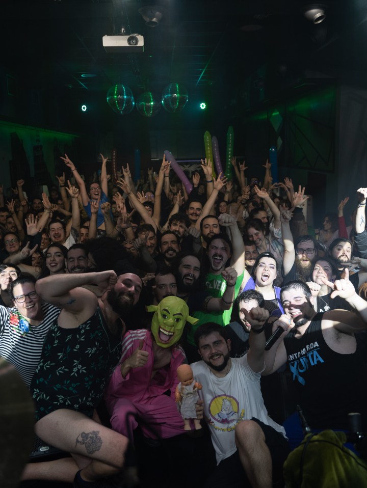 Case xusto un ano atrás, o 10 de decembro de 2021, tivera lugar nesa mesma sala o concerto de presentación do seu último álbum Xuventude Prexubilada, lanzado da man da súa promotora Galunk Producións. Un traballo que, aupado por sinxelos viralizados como a colaboración con Quim Barreiros “O Samil é Portugal”, supuxo o pulo definitivo que fixo que o grupo sexa coñecido por Galicia adiante, xa que pola zona de Vigo xa levaban anos sendo míticos como o que máis. Despois de percorrer boa parte da xeografía galega ao longo do ano, xa era hora de volver tocar na casa, e a xente respondeu á chamada ateigando a entrada da sala antes do comezo do concerto.