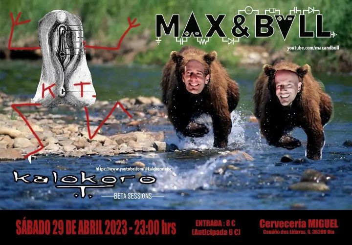 O sábado 29 de abril ás 23:00 na cervexería Miguel, Max & Bull e Kalokoro Teke ofrecerán un concerto no que a experimentación, o post rock e a electrónica serán protagonistas. O local, que está a programar numerosos concertos de diversos artistas nestes meses, está ubicado no Camiño dos Liñares nº 6 de Canido, na parroquia viguesa de Oia. As entradas anticipadas están á venta por 6€, mentres que na billeteira terán un custo de 8€.