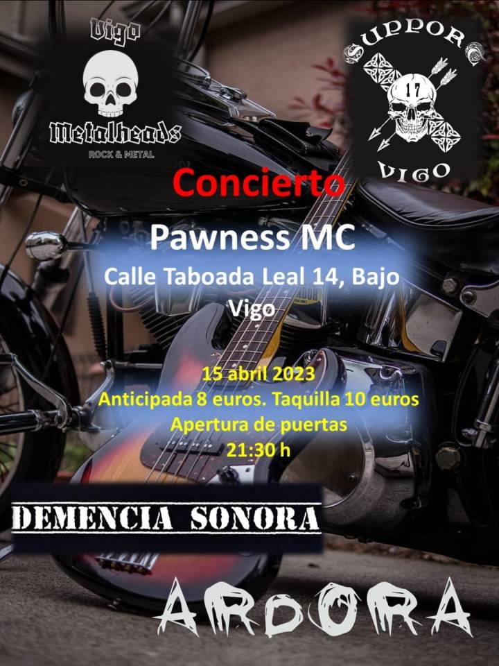 O local do clube de motoristas Pawnees MC de Vigo acolleu un concerto das bandas Ardora e Demencia Sonora, organizado pola asociación local Vigo Metalheads. A pesar de terse celebrado nunha data na que coincidiu con varios concertos similares na área, supoñendo unha dura competencia para o evento, un nutrido grupo de asistentes acudiu ao local para desfrutar dunha gran noite de heavy metal e punk rock.