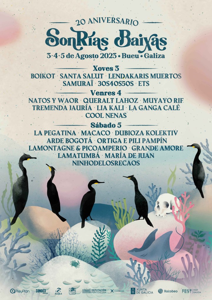 O Festival SonRías Baixas celebrará axiña o seu 20 aniversario cunha nova edición, que terá lugar, como é habitual, a principios de agosto, durante os días 3, 4 e 5 na vila de Bueu. O cartel, encabezado por Natos y Waor, La Pegatina e Macaco, aposta de novo por unha proposta musical ecléctica, na que teñen cabida xéneros tan variados como o rock, os sons urbanos, a electrónica, a rumba ou o ska, e que completan máis de vinte artistas. Aos xa citados súmanse Arde Bogotá, Boikot, Dubioza Kolektiv, ETS, La Ganga Calé, LaMontagne&PicoAmperio, Lendakaris Muertos, Lia Kali, María de Juan, Muyayo Rif, Ninhodelosrecaos, Queral tLahoz, Samuraï, Santa Salut, Tremenda Jauría, 30S40S50S, e unha representación galega formada por Lamatumbá, Cool Nenas, Grande Amore e Ortiga e Pili Pampín. Estes artistas poñen o broche de ouro a esta aliñación para conmemorar o vixésimo aniversario e na que se combinan artistas consagradas con décadas de traxectoria e artistas revelación do panorama reciente.