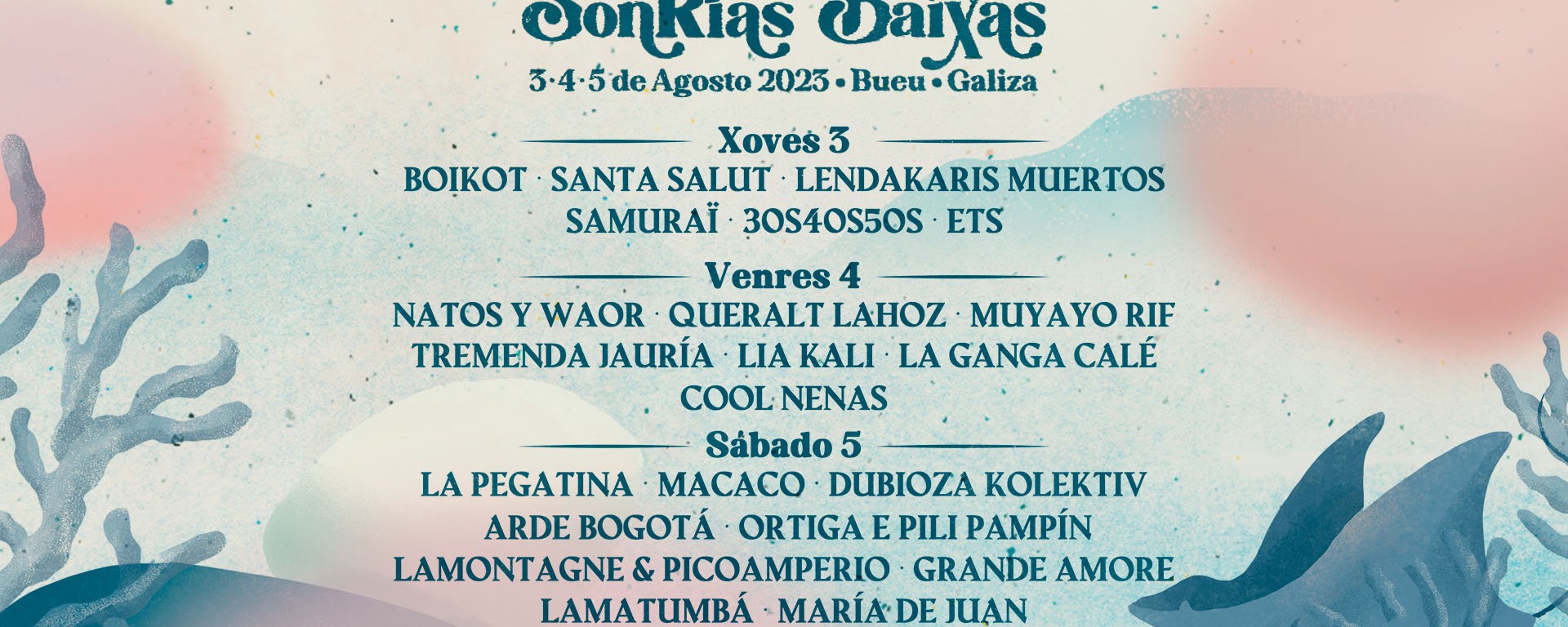 O veterano grupo galego Lamatumbá foi unha das dúas últimas incorporacións ao cartaz en maio, e con este concerto volve aos escenarios para deixar claro que seguen coas mesmas ganas de festa e verbena que en 1998, ano no que comezou a súa carreira musical. A agrupación mestura estilos na súa música estilos como o rock, o pop, o ska, o reagge ou diversos estilos de música latina. Pola súa banda, a outra das últimas incorporacións foi o dúo formado por Ortiga e Pili Pampín. Estes uníronse aos artistas galegos xa confirmados Grande Amore, coa súa mestura do música electrónica e pop rock, e Cool Nenas, o trío formado polas xa de por si coñecidas artistas galegas Mariagrep e dani xunto á canaria Kimberly Tell e que promete pinchar unha selección de temazos para non parar de bailar.