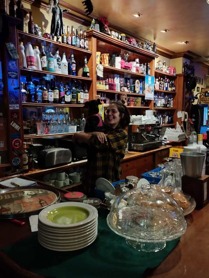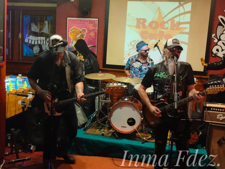 Cando abrimos aquí empezabamos dende cero e agora xa somos unha referencia, temos miles de seguidores en redes, temos moito movemento, de rockeiros, de moteiros… Moito rock and roll, moita moto custom, moita Harley Davidson, moito estilo pin-up… Isto era efectivamente o que pretendíamos facer a miña filla e máis eu, darlle ambiente á zona, inspirados na música e no cinema, especialmente dos anos 70 e 80. Os 80 en particular porque foi unha época de moito color, onde houbo de todo, que lle gusta moito á xente. Cando apareceu a oportunidade do traspaso do Rock Café, pois a aproveitamos. E por suposto, os animaliños son todos moi ben recibidos, xa non agardan na porta, xa pasan eles para dentro incluso aínda que o dono non queira (risas). Unha oferta cultural como ti ben dis, moi ampla. E logo pois tamén temos o da recollida solidaria de xoguetes de todos os anos, que xa imos comezar agora en novembro.
