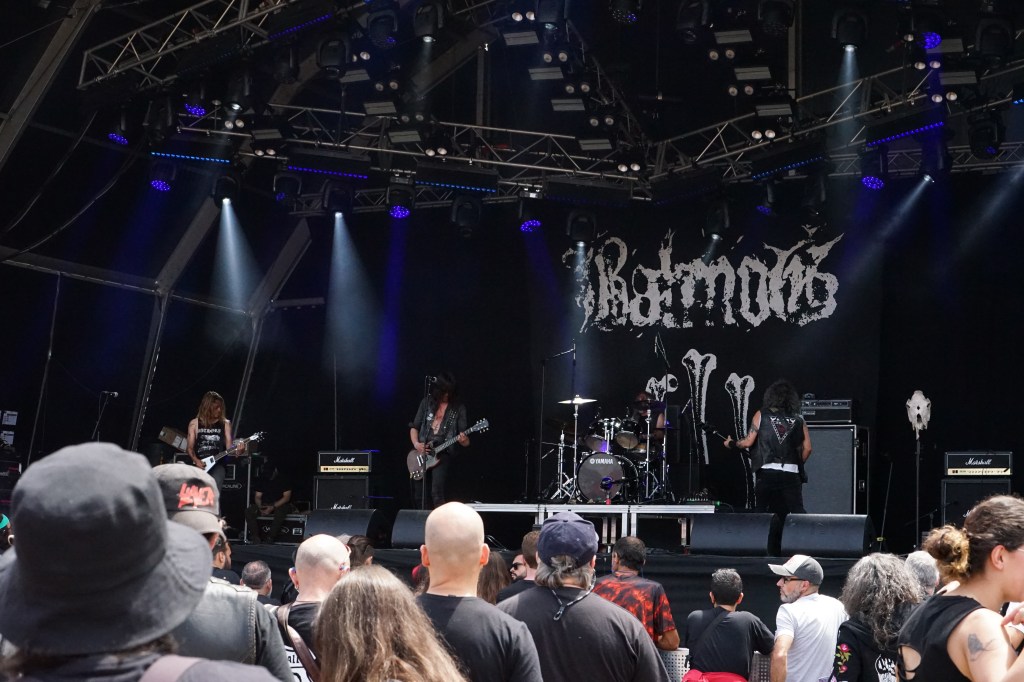 Comezamos pola banda máis veterana das dúas, Balmog. A pesar do mal tempo, xa había bastante xente pola zona cando chegamos, aínda que parte dela estaba facendo cola para a firma dos alemáns Electric Callboy e outra agardaba no escenario principal polo concerto da banda española Bolu2 Death. En todo caso, un bo número de fans do metal extremo e de Balmog en particular congregouse diante do escenario, preparado para o concerto dunha das bandas máis internacionais e míticas da escena black galega.