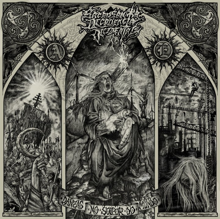 Como xa vos temos contado nestas páxinas, Sacrosanta Decadencia Occidental é unha banda única por varias razóns. Unha das que chama máis inmediatamente a atención é o feito de que se trata dun grupo con cancións integramente en galego fundado en Salamanca e que conta con membros de diferentes puntos do Estado, o que fai que se autodefina como unha banda de crust punk procedente de ningures. Outra cousa que atrae rapidamente as miradas é a coidada identidade visual da formación, cuxo broche de ouro é precisamente a portada do álbum que nos ocupa, Danzas no Solpor do Mundo, lanzado de xeito independente o 28 de xaneiro. Esta reflicte con todo detalle a identidade e a mensaxe de Sacrosanta, que traslada tamén coas súas evocadoras letras unha fonda crítica ao capitalismo cargada de carraxe pero tamén de vontade para mudalo todo. Tedes a nosa recensión completa en https://www.nosdiario.gal/articulo/musica/crust-punk-ningures/20250207155349216114.html