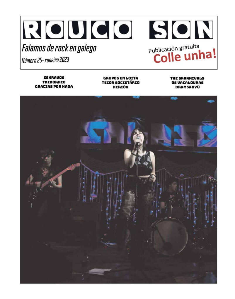 Entre setembro de 2021 e decembro de 2023, Rouco Son tivo tamén unha versión en papel que saía cada mes en formato xornal con 16 páxinas en cor. Aquí tedes os 12 números editados no ano 2023 en pdf. Se estades interesades en ter algunha copia física dalgún deles, contactádenos a ver se hai sorte! Pode que teñamos aínda algunha por aí.